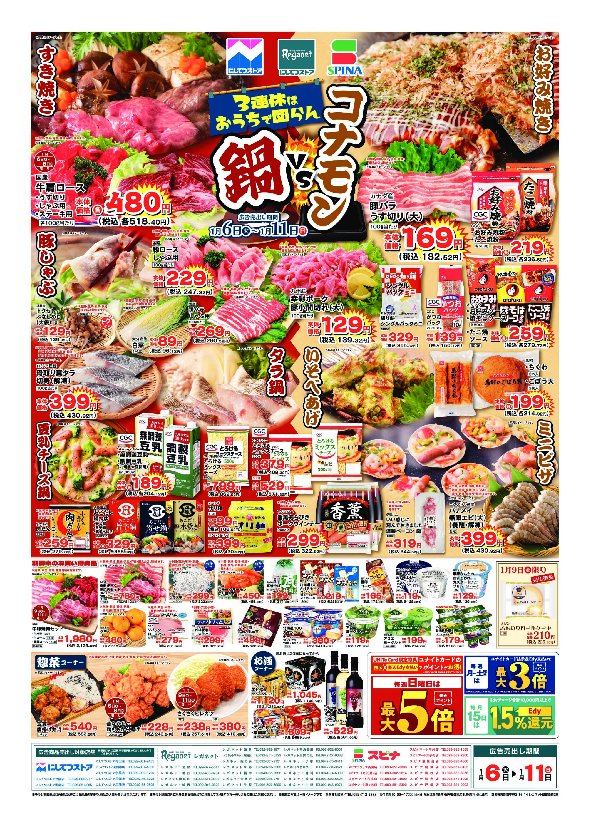 にしてつストア 週チラシ 3連休は家族団らん 1/6㈫~1/11㈰