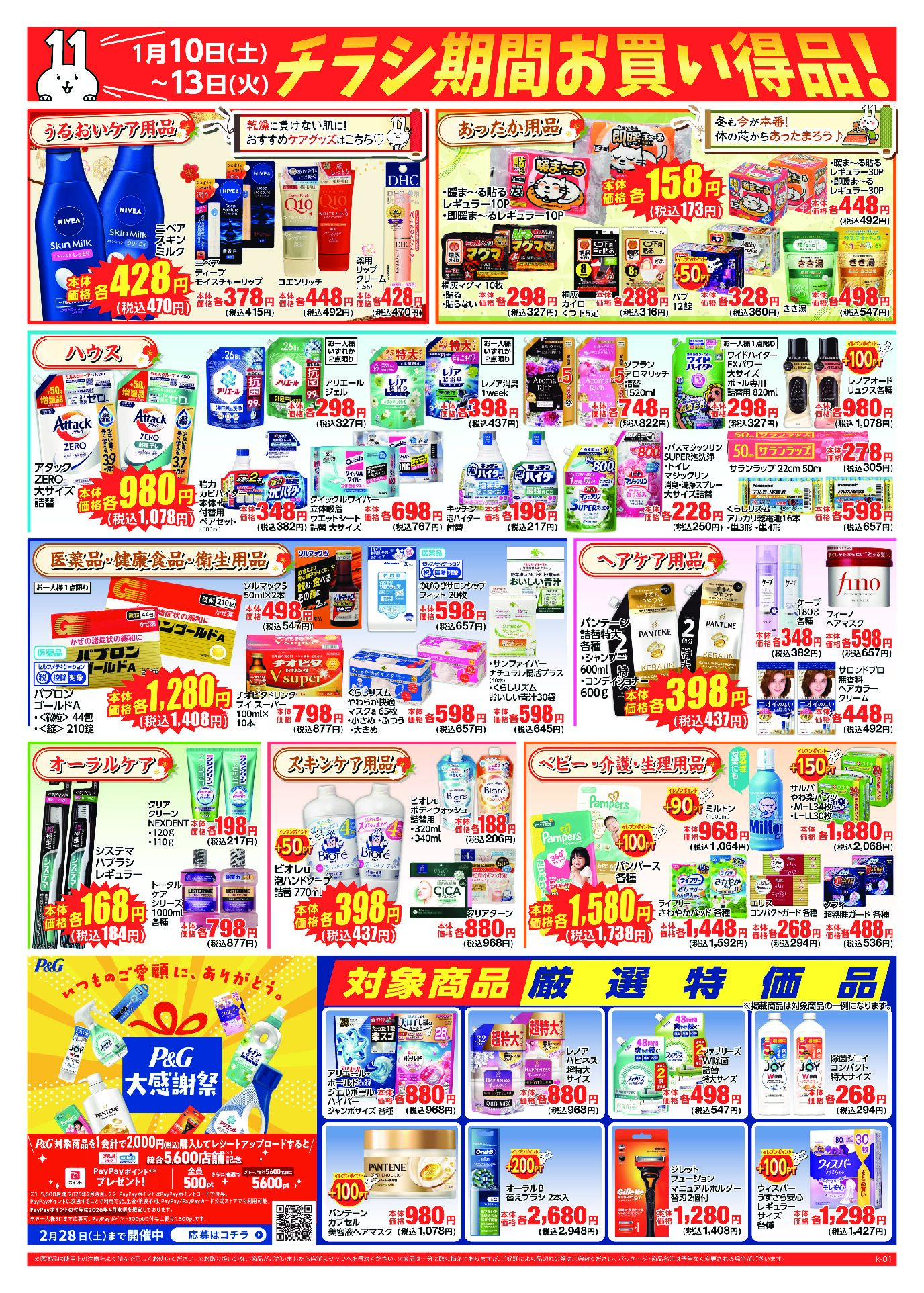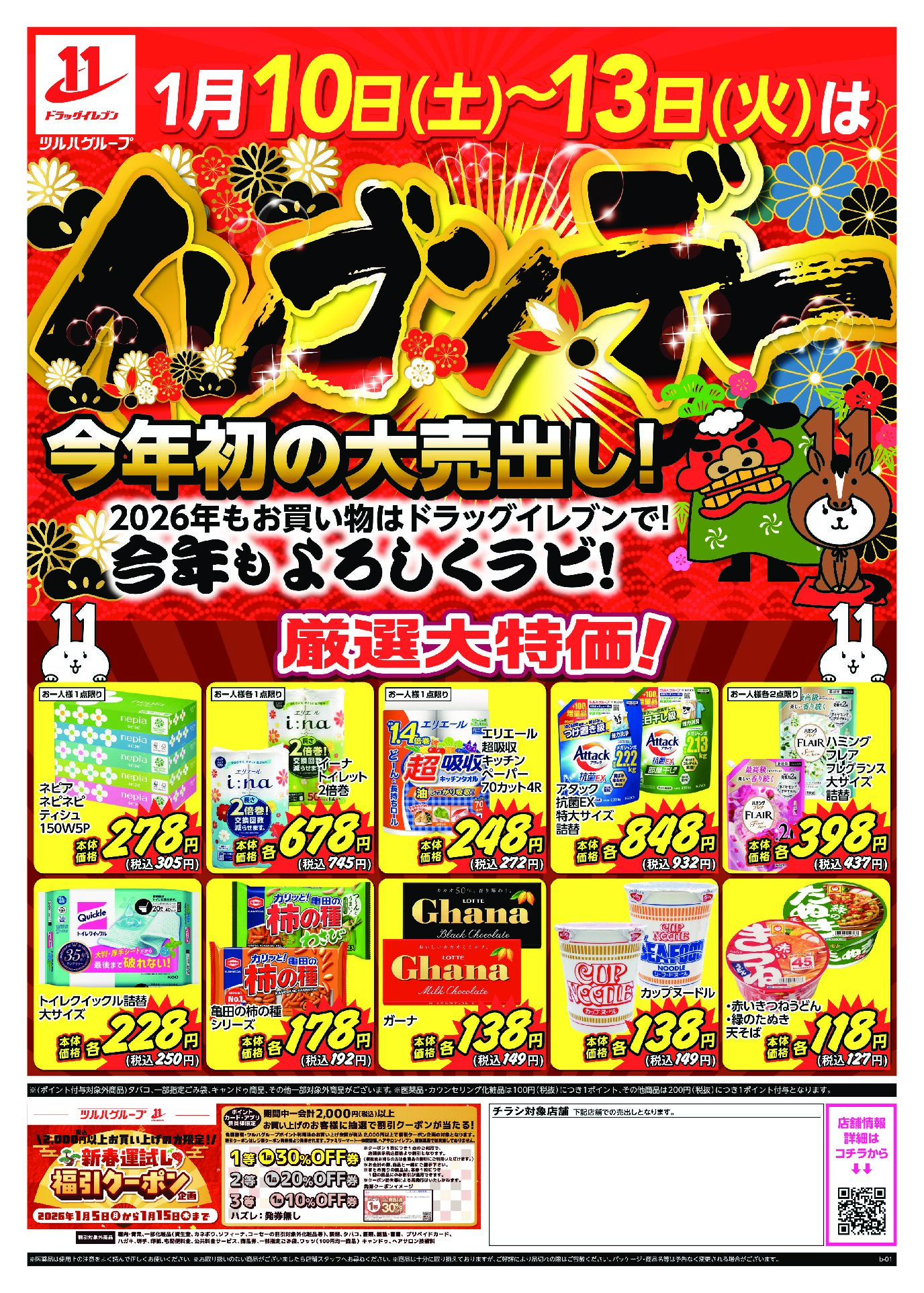 ドラッグイレブン イレブンデー 今年初の大売り出し 1/10㈯∼1/13㈫【裏面】
